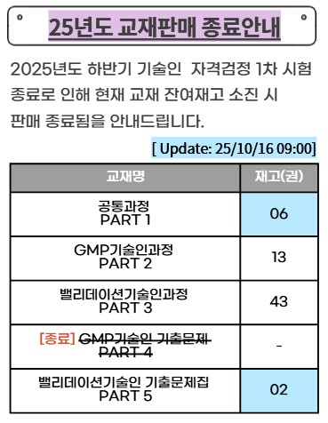 [자격검정] 2025년도 자격검정 교재 재고 현황 안내의 건
