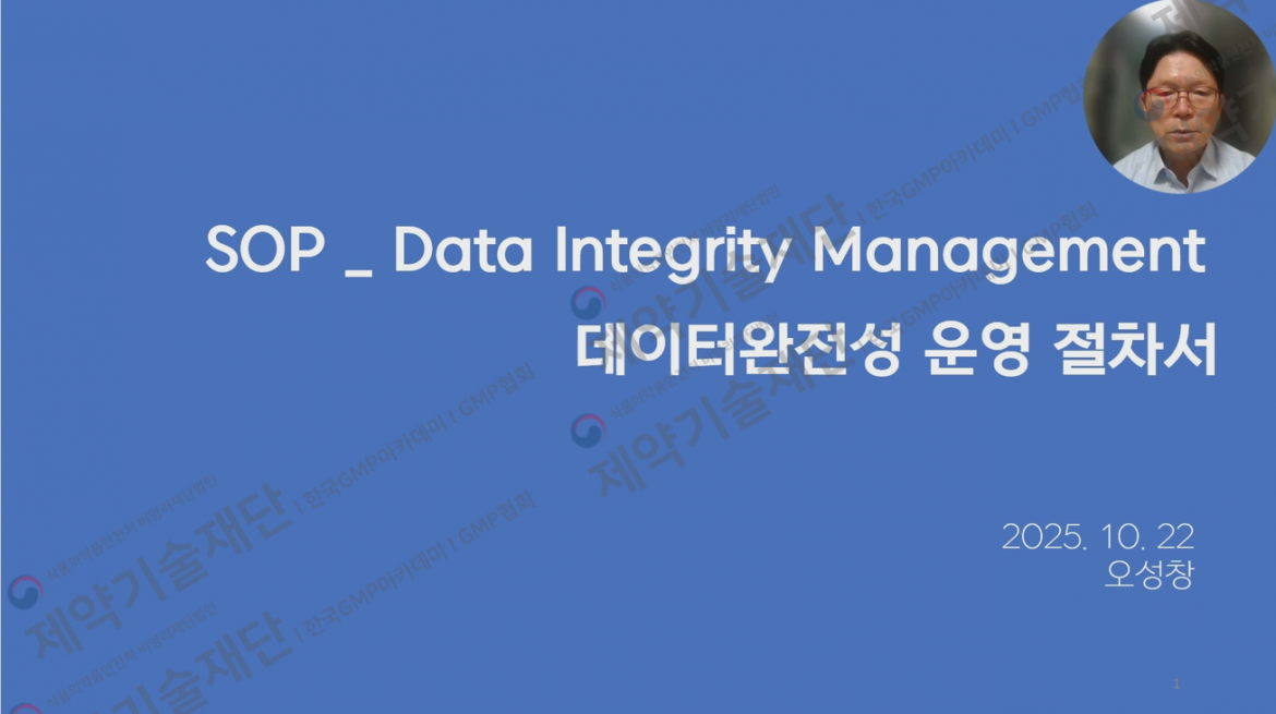 주제 : SOP_데이터완전성 절차서 작성 및 운영