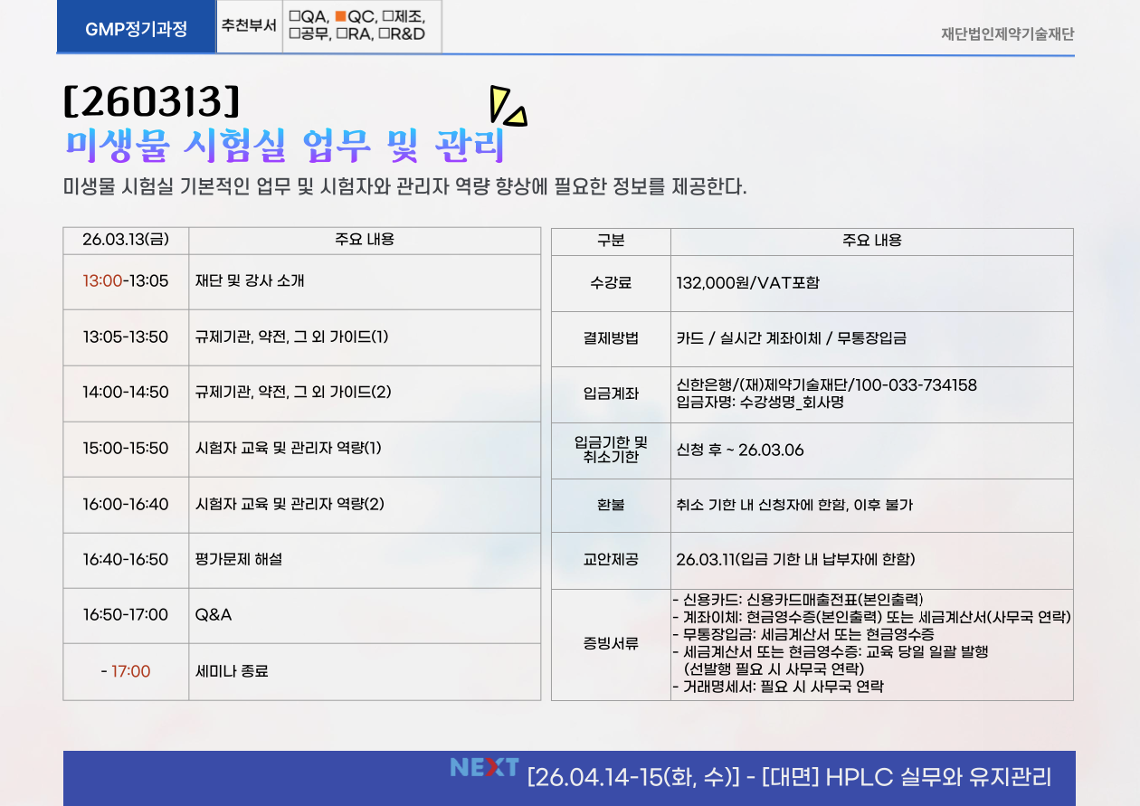 [2026.03.13] 미생물 시험실 업무 및 관리