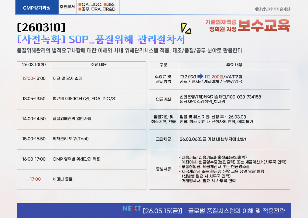 [2026.03.10] (보수교육) (사전녹화) SOP_품질위해 관리절차서