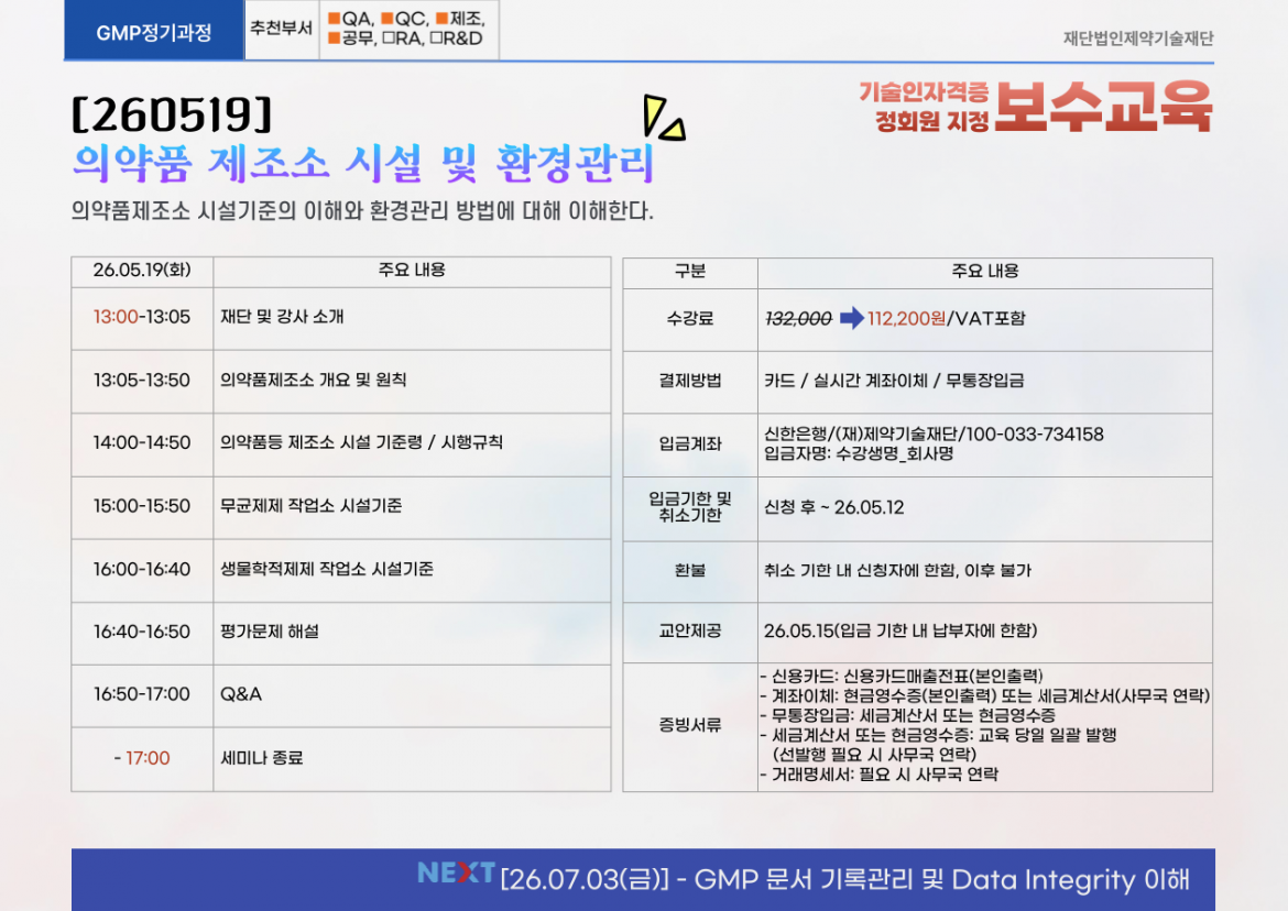 [2026.05.19] (보수교육) 의약품 제조소 시설 및 환경관리