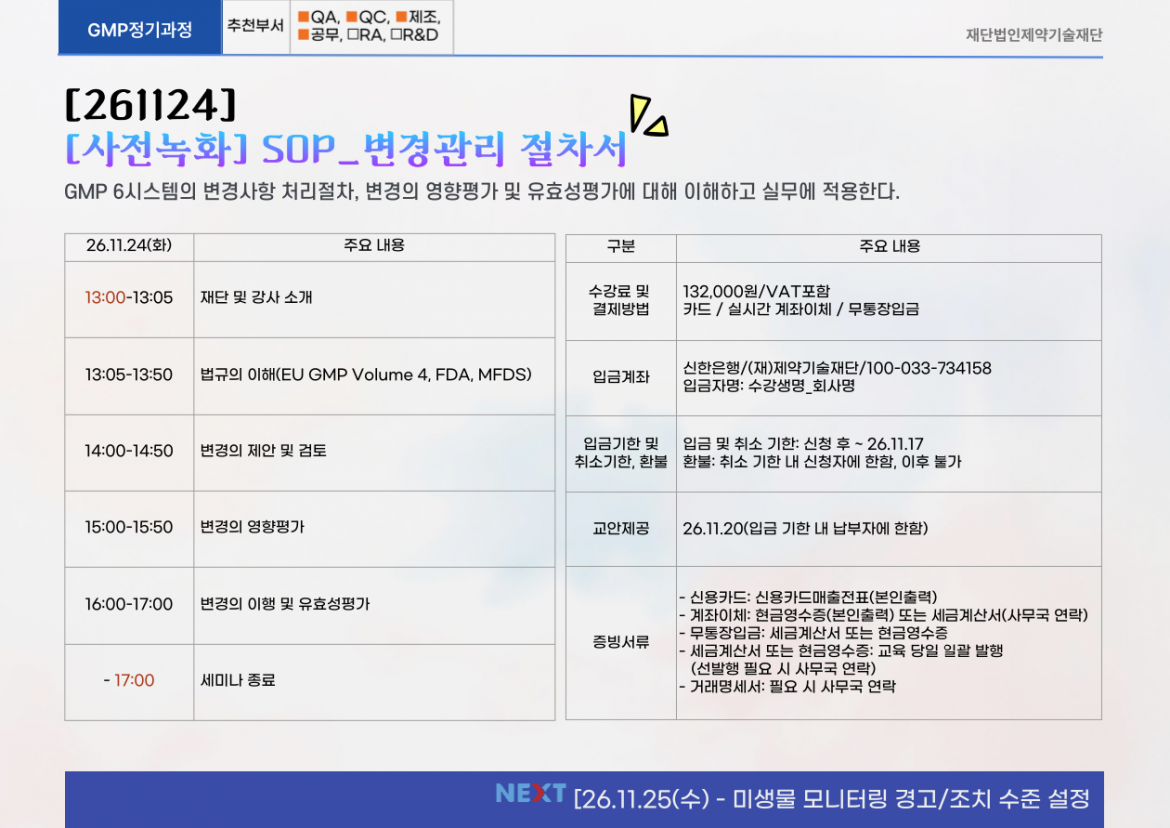 GMP 교육과정 및 세미나 검색