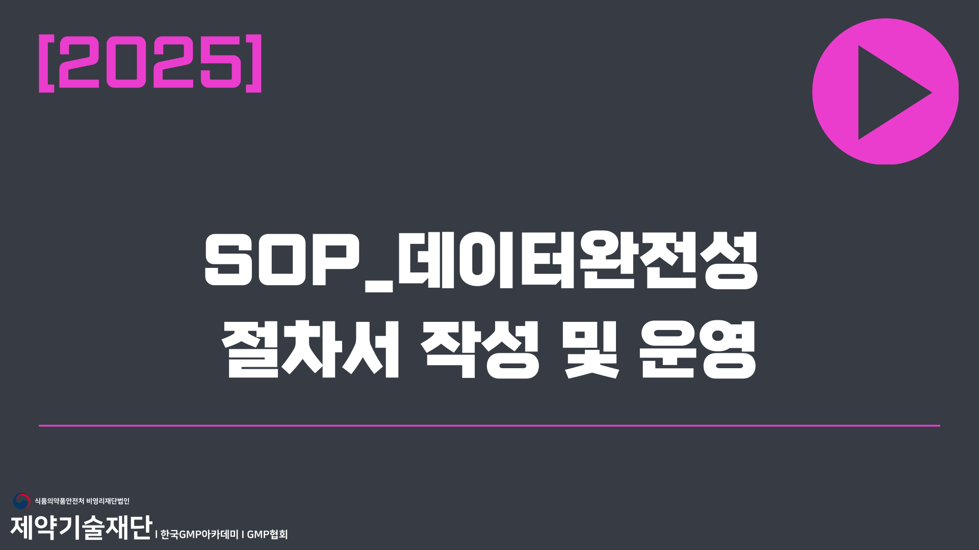DI가이드 이해와 GMP 규정에 따른 절차서 작성 및 운영